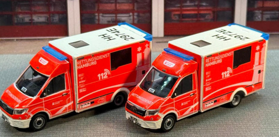 RTW Billstedt Berta u. Caesar Flux eTGE Baujahr 2025 Standort BF Billstedt (F-25) HH-2972E u. 2974E 2972E war vorher zur Erprobung auf F-22 (Berliner Tor) stationiert